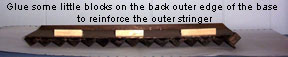Day 3 Glue some cove molding, or anything with a 90-degree angle on the underside of the base, right at the edge this will not show, it is to reinforce and help to hold the outside stringer. Wait for the glue to dry. See photo 4 |